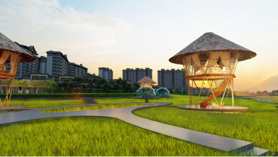 9大主题游园休闲场,每一个场景都是一个独特的生活方式的缩影。在“草坪剧场”欣赏露天演出,仿佛置身于永不落幕的人间喜剧中;本地树木与四季花卉共同构成了“七彩云南”独特的景致,如同版纳的馈赠;在“童梦同享”与孩子一起重新认识世界;“水漾澜沧”则为未来的园区泼水节埋下了伏笔,尽情体验水的乐趣;“城市农庄公园”再现了古老的农耕文化,让人们重新感受大自然的美好;“蝶舞花径”“傣泰光影”则在花丛中装置艺术品,养殖蝴蝶,营造出充满傣族风情的生活场景。