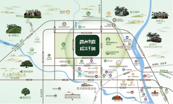 周边项目蓬勃发展中,万亩康养产业配套将为居民提供健康保障,曼沙古寨、傣药博物馆、主题乐园则带来了更多更丰沛的旅游资源,神石山大观园将大自然美景拉近生活,而毗邻的体育运动场馆,让运动与健康源源不断滋养生活。在这里,城市级文旅配套日新月异,改变了城市面貌,更让人们对未来的生活充满了期待。