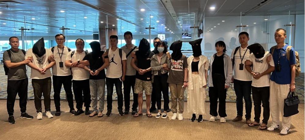 8月23日, 6名电信诈骗犯罪嫌疑人分两批在仰光国际机场由缅甸警方移交给中国警方工作组押解回国。