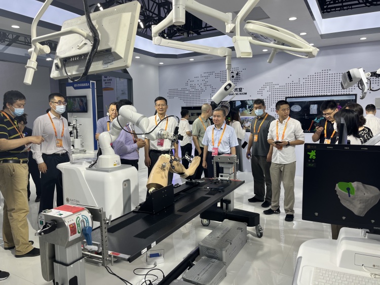 在纳通科技集团展区,纳通智能手术室系统、纳通关节机器人、外骨骼机器人、智能载药纳米机器人等一系列尖端医疗科技成果,全方位、多角度展示了纳通在智慧医疗赛道的创新布局。