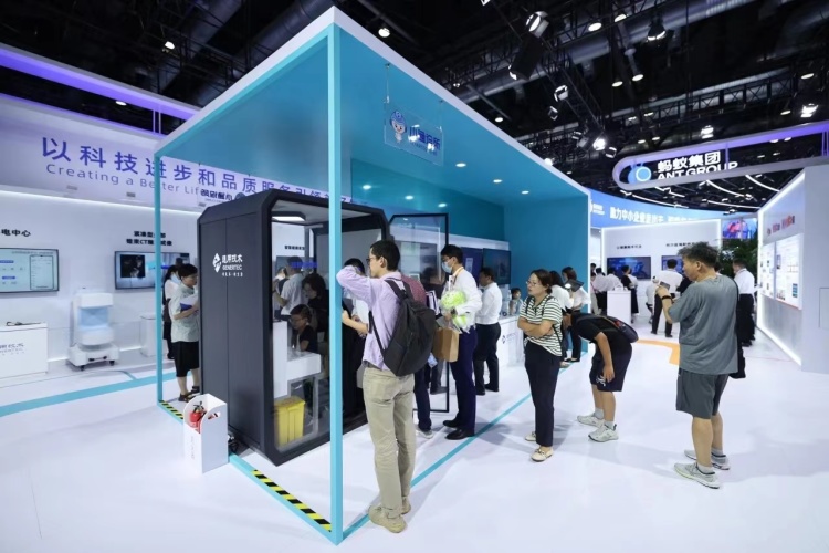 在医疗健康领域,诸多企业乘着数字化东风,将人工智能等数字技术与健康产业各领域进行融合创新,展出了一系列走在前沿的高科技医疗设备与解决方案。