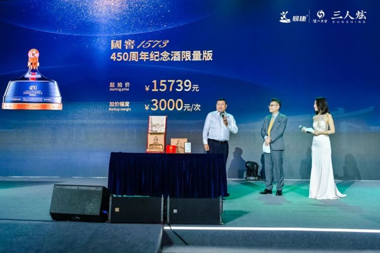 第二件拍品是国窖1573 450周年纪念酒,是由中国酿酒大师、泸州老窖酒传统酿制技艺第22代传承人刘淼先生与当代艺术家庞茂琨先生联袂共创,选用1573国宝窖池群酿造,以浓香至味,彰显“国宝风韵”。以时间至臻,传承“国技铭扬”。据悉,此次亦为国窖1573 450周年纪念酒在江苏省首拍,现场叫价声、欢呼声不断,经过层层竞价,最终被买家收藏。