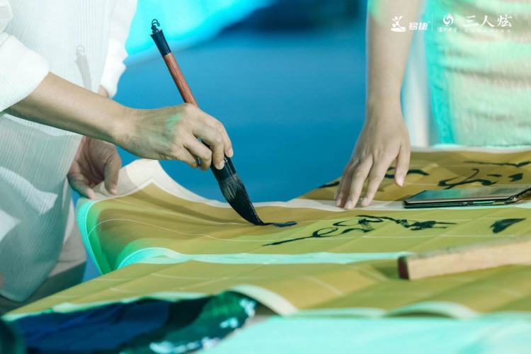 首先是中国画院常务副院长兆学军先生当场手书墨宝,“悟浮生,厌浮名,回视千钟一发轻,从今心太平”,宋代大诗人陆游的《长相思》前半部分跃然纸上,三人炫悟炫的精神内核正源于此。经过数轮激烈的竞价,最终被成功拍下。