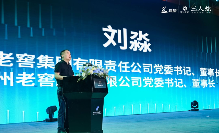 泸州老窖董市长刘淼先生发表祝贺词“基于同样的使命、同样的责任和同样的热爱,泸州老窖“三人炫”品牌发展迈向三年之际,隆重推出高端旗舰产品:三人炫·悟炫。甄选老窖池酿造优质中段酒,加入30年陈年酒配比,大师小批量勾调后,经陶坛长期陈储,口感陈香厚重,空杯留香。在易捷强大的渠道优势和各位嘉宾的鼎力支持下,这瓶由国家级酿酒大师严苛选料、匠心酿制的浓香美酒,一定能够掀起新的消费热潮。”