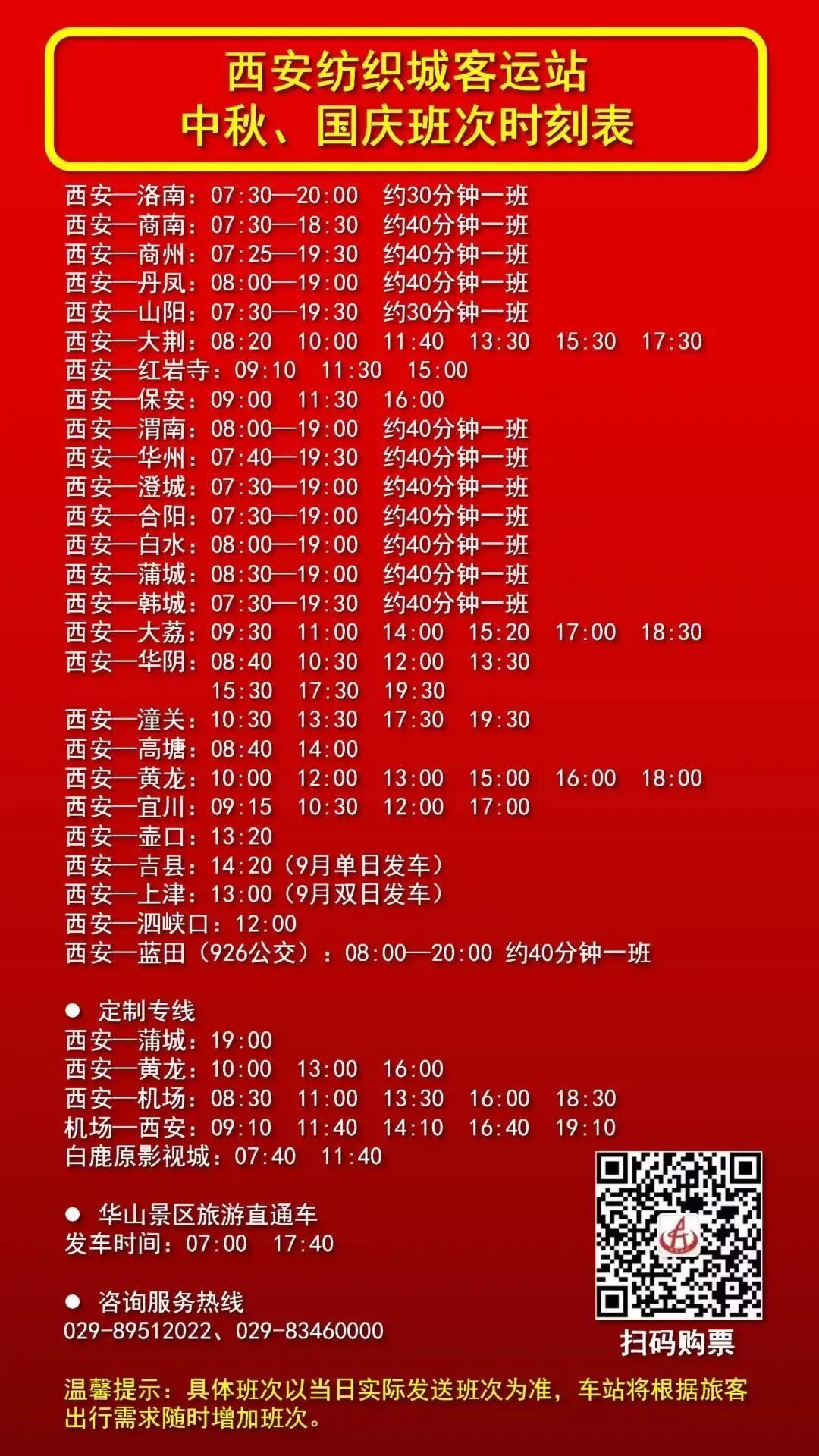 西安多条客运线路开启客票预售