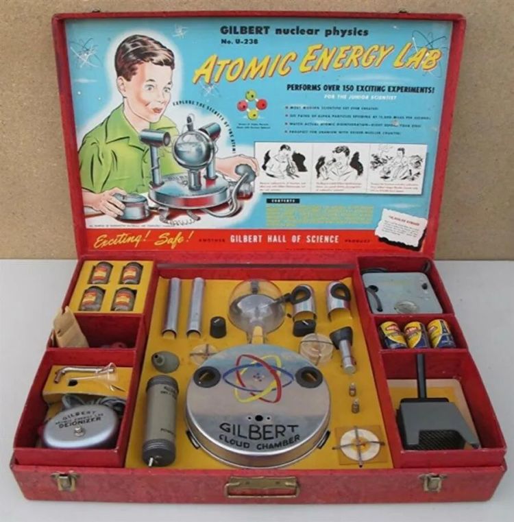 1951年,世界上最大的玩具制造商吉尔伯特公司发售了“史上最危险玩具”——吉尔伯特铀238原子能实验室 (Gilbert U-238 Atomic Energy Laboratory)。