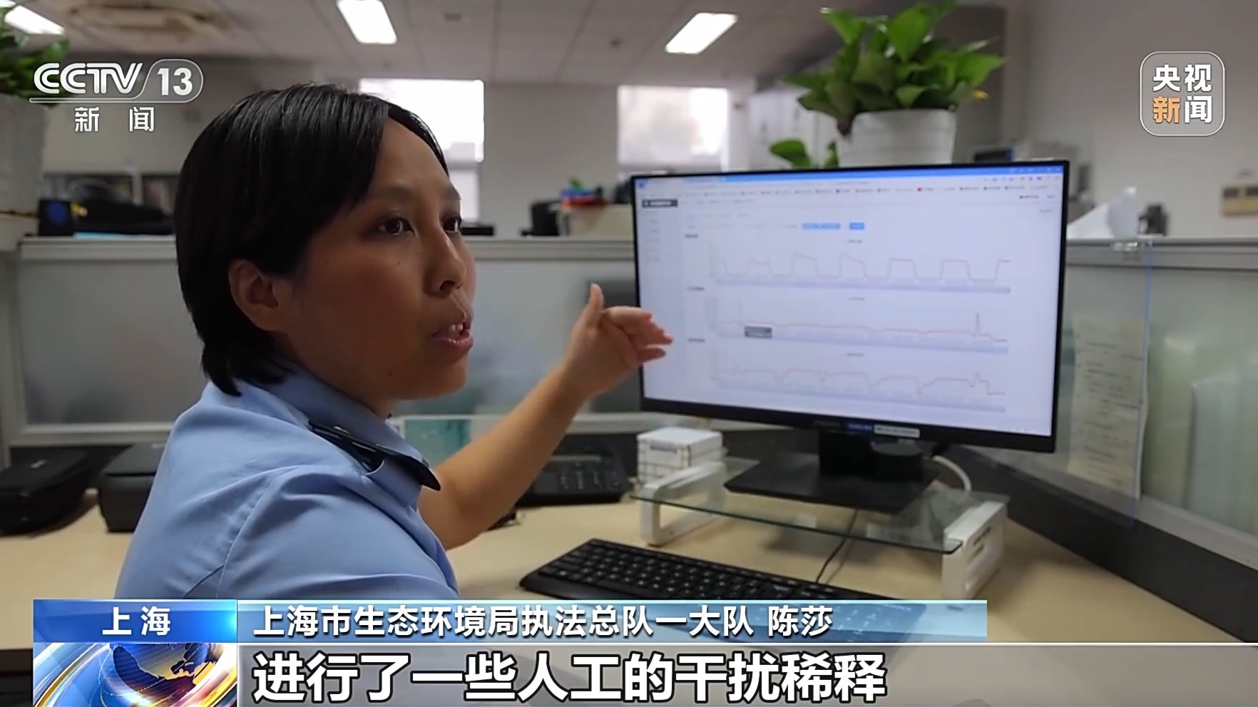 上海市生态环境局执法总队一大队 陈莎:根据正常的情况,如果废水没有流量的时候,它应该是没有波动,但是它这里有波动。我们就猜测它是不是进行了一些人工的干扰稀释,进行一些人工的操作,导致它没有流量的时候有浓度。