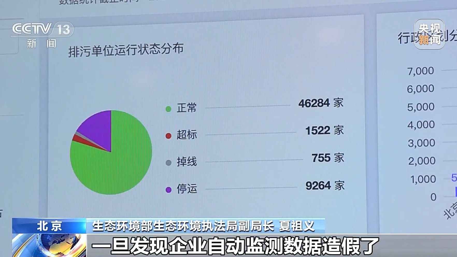生态环境部评估中心固定污染源监控中心副主任 吕晓君:目前国家已经把全国主要的排放污染源企业,都纳入了全国固定污染源监管平台,那么在这个平台里边,首先对这些企业每一个排污口进行编号,揭露了这些企业的生产数据、用料数据,还有一些跟生产相关的废气量、废水量或者用水量和用电等等,这些数据都接入到系统当中。在这个系统上,可以对这些企业的每一个小时排放的水污染物情况,和每分钟大气的污染物排放情况,24小时纳入监管视野,能发现这些企业是否存在在线数据造假的一些行为。