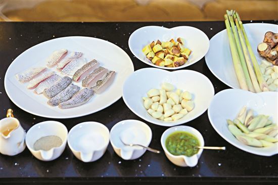 曹师傅这道“青姜蓉SPA黄脚立”的应季菜品比较接地气,普罗大众都能做,香茅在烹制过程中的作用不但可以去腥增香,还给鱼肉带了点不一样的风味。