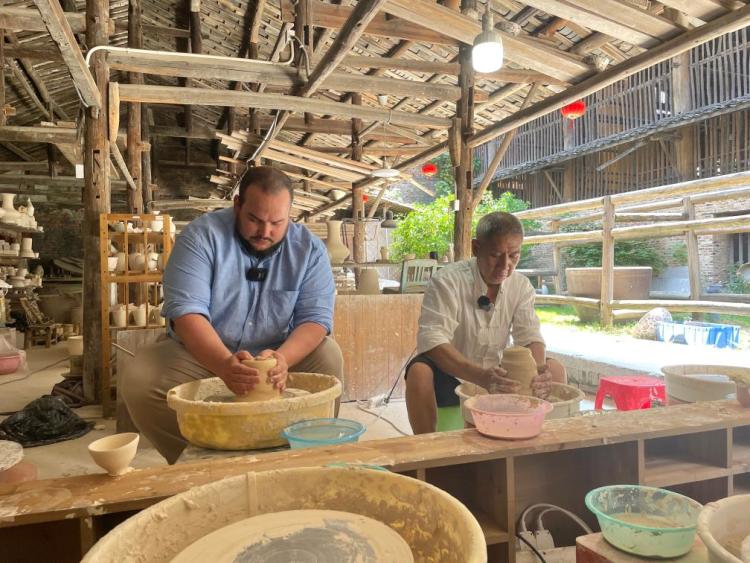 在景德镇的明清窑作群,每天都有不少国内外游客慕名而来,向非物质文化遗产传承人宗鸿新学习拉坯技艺。宗鸿新从事手工制瓷已有45年,在他看来,景德镇陶瓷艺人一直抱有开放的心态,将传承千年的手工技艺传授给四方来客,也收获了很多友谊,“现在越来越多的人加入传承陶艺的队伍中”。