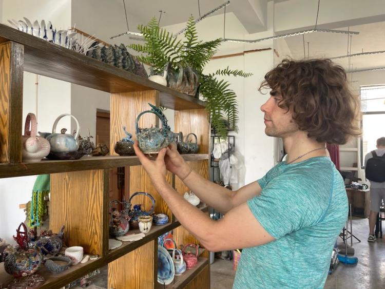 景德镇国际工作室内,来自50多个国家的艺术家在此驻场创作。美国艺术家丹尼斯说,当地手工制瓷产业链齐备、创作便利、成本低,这样的创作环境吸引无数和他一样的陶瓷爱好者纷至沓来。