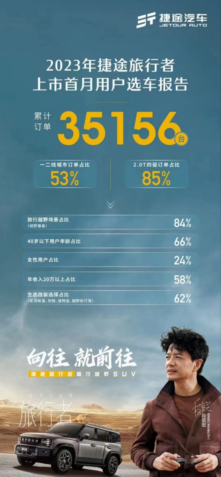 我们对捷途旅行者充满希望,在国内月销过万是非常有把握的。作为一款为全球市场开发的车型,捷途旅行者预计在今年年底会在国际市场投放,首批投放超过30个国家或地区。