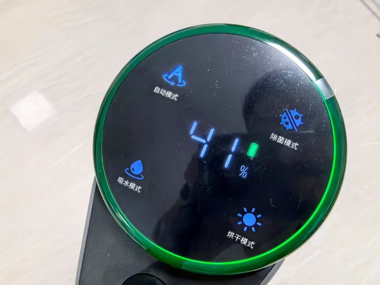 开机之后,主机顶部屏幕亮起,会显示自动、除菌、吸水、自清洁的四种状态,开机默认为自动模式,同时伴有语音提醒,让用户直观了解当前模式,也可以通过模式切换按键,进行便捷切换。