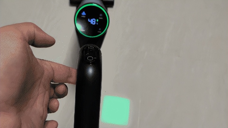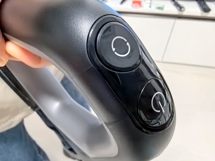 手柄采用了人体工学设计,握持起来非常舒适,前方分别是开机键和模式切换键,后方是一键清洁按键,布局合理,提升了使用便捷性。