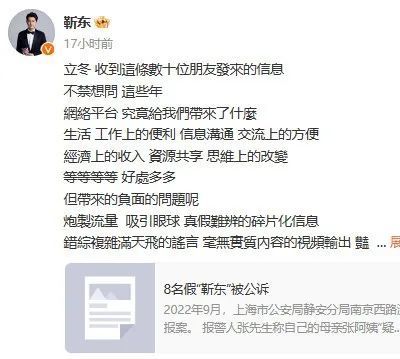 7月21日,在该诈骗案侦办的过程中,靳东就曾发文表示“上海警方办案给力,网络平台难逃其咎”,“希望可以拿出更加切实有效的措施和办法”。