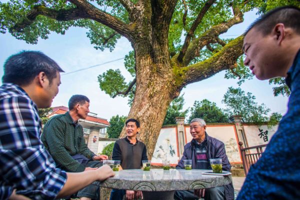 村民在小古城村村口的大樟树下议事 余杭区委组织部供图