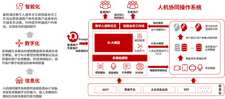从容大模型包含但不限于语言大模型、视觉大模型、语音大模型、代码生成大模型以及图像生成大模型等,其基于云从科技人机协同操作系统(如图1所示),围绕打造像人一样思考和工作的智能体目标,由云从科技多年积累的算法工厂、AI数据湖、知识计算、人机交互、智能业务流等核心技术构建而成。它通过实时学习并同步反馈结果,可以解决诸多AI应用的痛点,从而有利于快速普及个性化应用。同时,其具备上下文学习能力,能够以更好的交互性能,应用于金融、安防、政务、交通、能源、教育、医疗、文娱等行业领域。