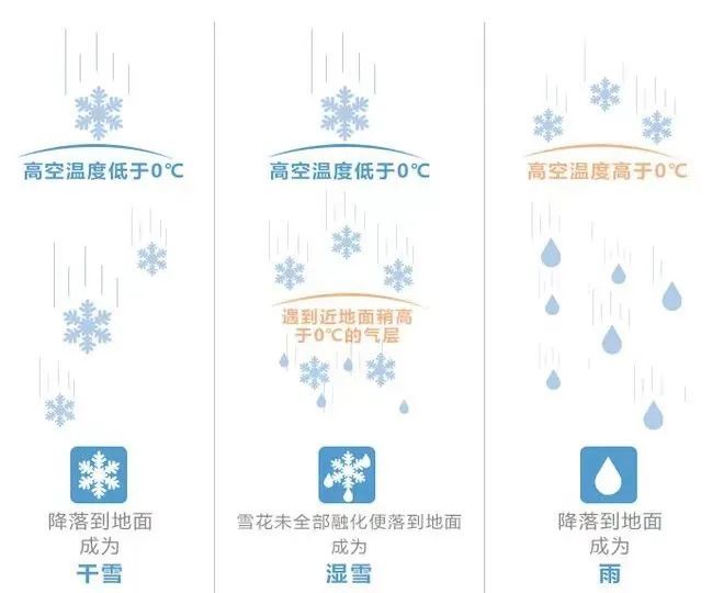 当气层的温度高于0℃时,雪便融为水滴而降落,这就是雨。