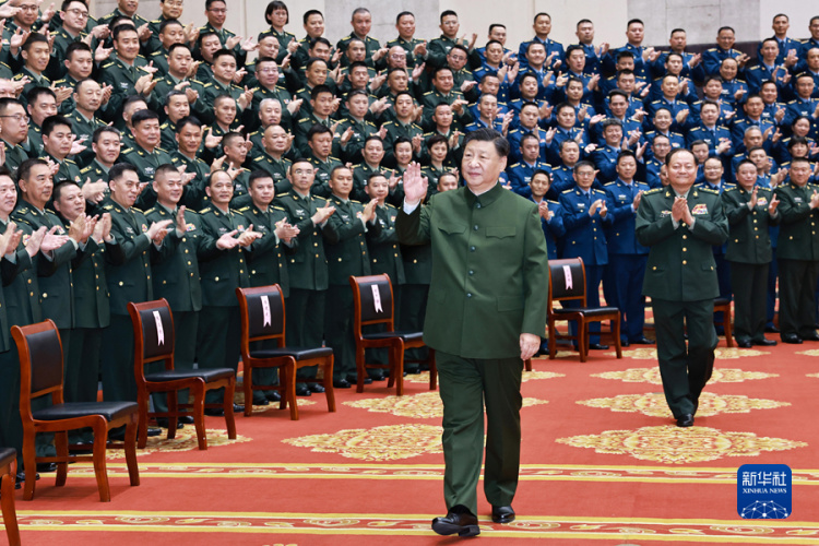 12月15日上午,习近平在南宁亲切接见驻南宁部队上校以上领导干部,代表党中央和中央军委向驻南宁部队全体官兵致以诚挚问候,并同大家合影留念。张又侠陪同接见。