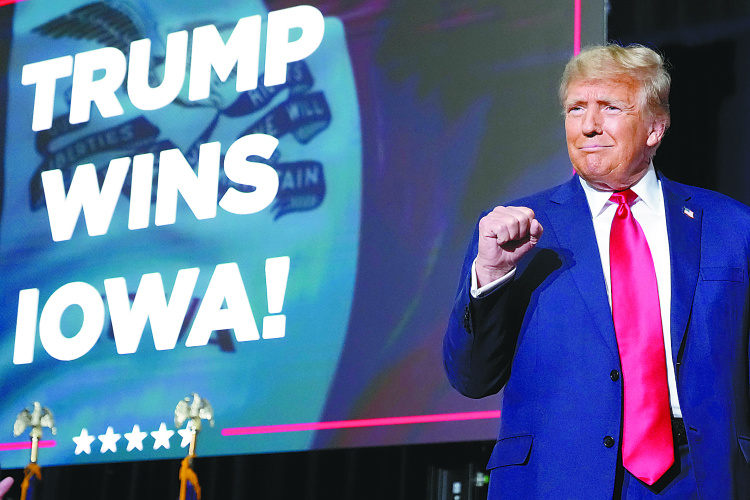 【环球时报驻美国、德国特约记者 郑可 青木 环球时报特约记者 王逸】“令人震惊”“前所未有”——美国媒体15日纷纷用这样的词汇形容特朗普获得的胜利。当地时间15日晚,美国前总统特朗普以压倒性优势赢得艾奥瓦州共和党党内初选,大大增加了他获得共和党总统候选人提名的可能性。在约11万张选票中,特朗普的得票率为51%,远高于第二名德桑蒂斯的21.2%和第三名黑利的19.1%。排名第四的美国印度裔企业家拉马斯瓦米当晚宣布退出竞选,转而支持特朗普。美国有线电视新闻网(CNN)感叹道:在不光彩地离开华盛顿后,特朗普展示了“令人震惊的实力”,“这是美国政治史上最令人震惊的逆转之一”。结果公布后,特朗普高调宣称“让我们把国家夺回来”,美国总统拜登则在社交媒体上发文称,特朗普已经成为共和党的领跑者,这次选举是他“与极端的‘MAGA(让美国再次伟大)共和党人’之间的较量,昨天是这样,明天也是这样”。