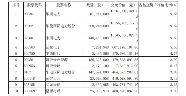 对于四季度而言,以代表性产品前海开源公用事业股票为例,前十大重仓股分别为华润电子、华能国际电力股份、中国电力、法拉电子、宁德时代、新天绿色能源、新天绿能、华电国际电力股份、东方日升、弘元绿能、星源材质。
