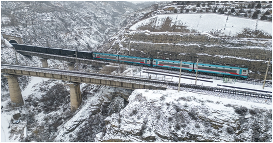 从大漠边关到塞北草原,从黄河两岸到崇山峻岭,万吨列车呼啸而过。