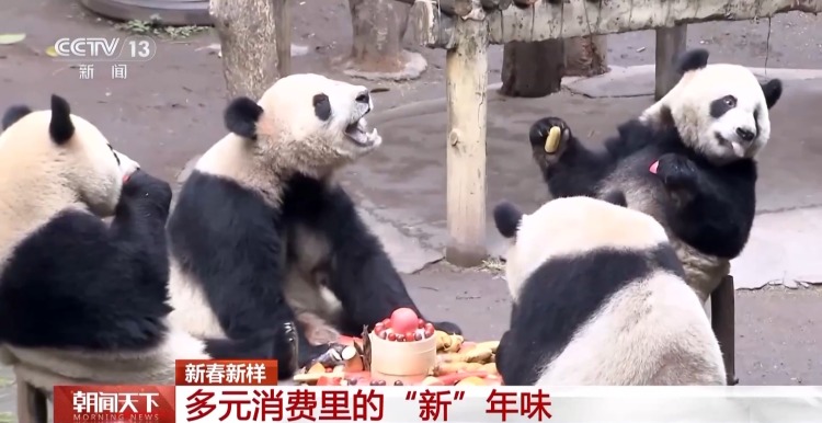 成都大熊猫繁育基地周边民宿预订量比去年同期增长了近10倍,陪国宝熊猫过年,也是一种时尚。