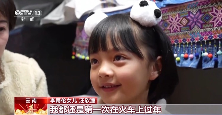 李雨伦女儿 汪欣潼:我都还是第一次在火车上过年,所以很兴奋。