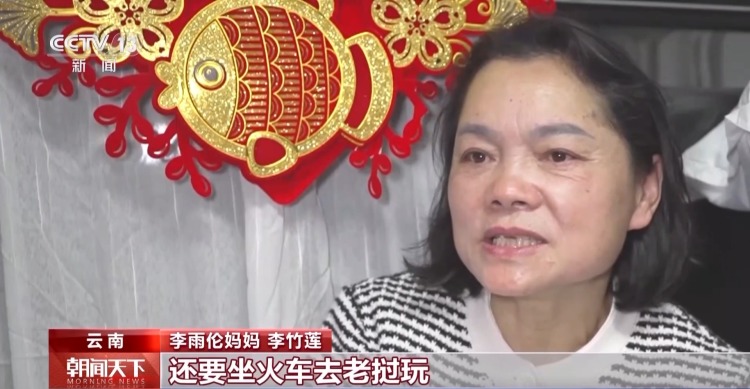 李雨伦妈妈 李竹莲:以前一上火车想着赶快回家,现在生活条件比较好了,今年的年就想不一样了。我们去了丽江玩了之后,还要坐火车去老挝玩。
