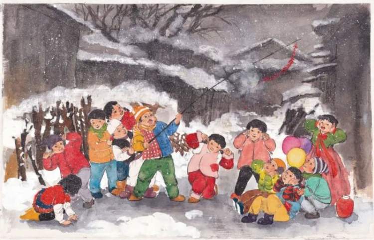 放爆竹的孩子们。图片出自《年味儿》。
