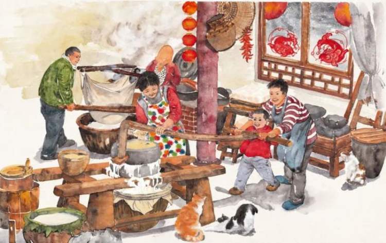 磨豆腐。图片出自《年味儿》。