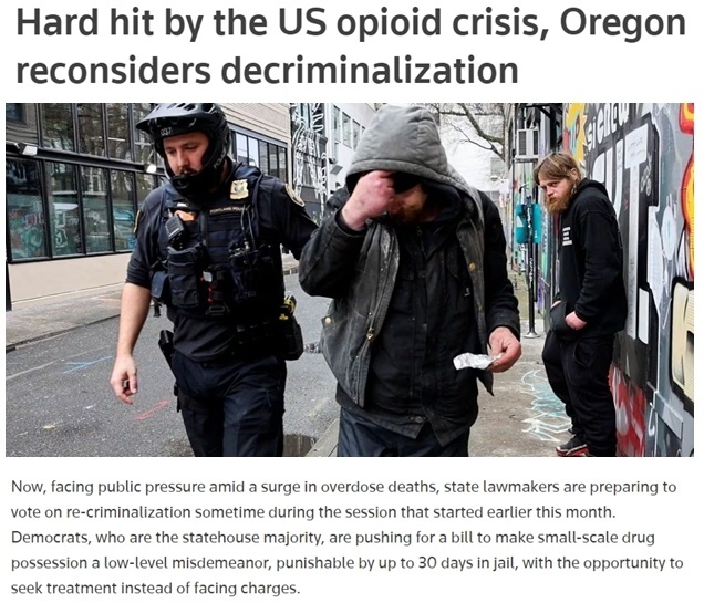 三年前的2021年2月,美国俄勒冈州正式实施了号称“全美最宽松”的毒品法规——“110号法案”,允许居民持有少量毒品。