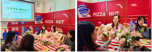 在青岛,必胜客举办了“向春而生 融合成长”女神节自媒体交流会,邀请女性自媒体达人们一起探索新的生活方式,品尝美味花式下午茶,沉浸式插花体验……