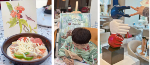 满目环绕的艺术画作、直通云霄的共享空间、静谧乐享的时间盒子、挥笔成餐的巨幅油画。3月7日,在天津金茂汇的全国首家必胜客艺术画廊主题餐厅,8位教育、医护以及新闻行业的女性代表受邀参加了天津必胜客联合天津科技大学、鸵鸟墨水共同开展的“‘艺’起健康 有爱必胜”女神节活动。