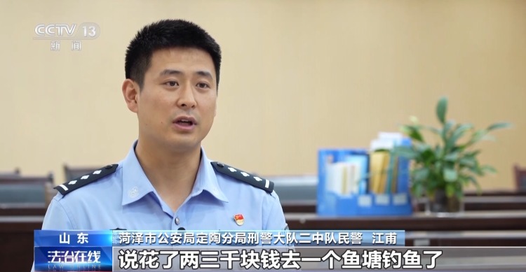 菏泽市公安局定陶分局刑警大队二中队民警 江甫:一个群众到公安局举报,说花了两三千块钱去一个鱼塘钓鱼了,想钓这个(鱼)标讲的是6.8万,给3.8万的鱼,最后钓了五个多小时,什么也没钓着,当时他就感到这个事很蹊跷,就到公安局来报案了。