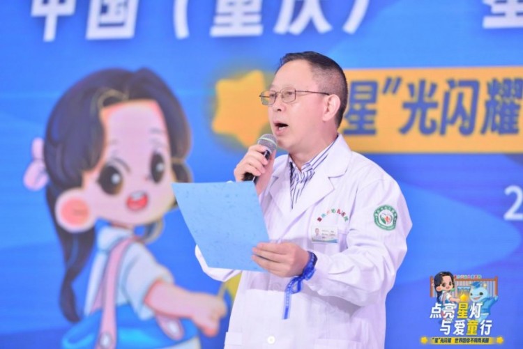 活动伊始,主办方代表重庆天佑儿童医院行政院长苟践上台致词。他表示,孤独症儿童是一群特殊的孩子,他们行为刻板,难以与人共情,需要更多的理解和关爱。希望通过这次活动,让更多的人了解孤独症,关注孤独症儿童的生活和成长,为他们创造一个更加包容和温暖的社会环境。