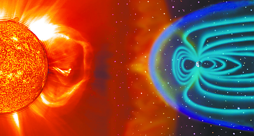 有记录以来最大规模的太阳风暴发生在1859年。当年9月1日,全球多地天文台都测量到了地磁场强度的剧烈变动,各地电报局电报机开始闪火花,甚至电线也被熔化了。幸运的是,当时还没有人造卫星、无线电通信和现代的电力传输网络,因此这次太阳风暴的影响并没有那么大。但1989年3月13日的太阳风暴所引发的后果就严重得多了。加拿大和美国发生大面积电力系统崩溃,澳大利亚输油管道受损,日本和美国的多颗卫星出现异常。2003年10月26日到11月4日太阳上爆发了一系列强烈耀斑,被称为“万圣节风暴”。除了大量卫星和航天器受损外,全球定位系统的精度也受到影响,导致部分地区的航班瘫痪。