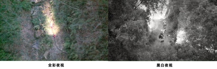 据介绍,禅思H30系列的夜视能力是提升的重点。其可见光的相机就拥有夜视能力,相比红外成像,可以看到更多目标的特征信息。比如在天刚黑时,用全彩夜视搜救走失的“驴友”,就能看清道路状况、衣服颜色、树木状况等;夜色更暗时,用黑白夜视搜救,也能看清人员、树木和道路的状况。