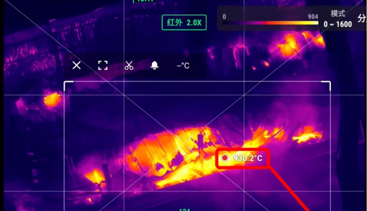 江苏某救援支队也在火场救援中使用了经纬M350+禅思H30T这套组合,更加强大的红外相机给消防指战员们留下了深刻印象。1280×1024的高分辨率红外相机监控火场更为清晰,更可看清建筑物结构结构及完整性、防范坍塌风险。大范围测温最大支持1600℃,透过垮塌的彩钢瓦屋顶也准确找到起火点位置,为灭火提供了准确依据。