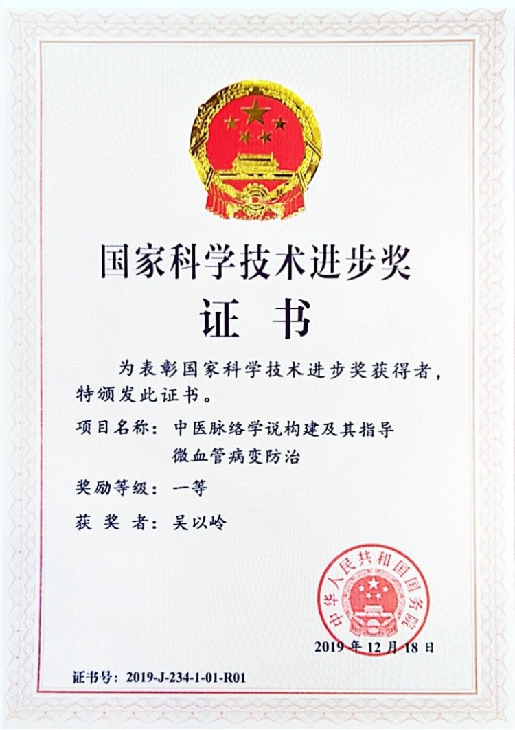 如何防治微血管病变,守护人体“生命线”呢?中国工程院院士吴以岭教授勤求古训,传承创新,系统构建了指导心脑血管病、糖尿病血管并发症等重大疾病防治的原创理论——脉络学说,并在这一学说指导下,完成了两项国家重点基础研究发展计划(973计划)项目,在理论、机制、临床等方面取得一系列重大科研成果。“中医脉络学说构建及其指导微血管病变防治”项目荣获2019年度生命科学领域唯一一项国家科技进步奖一等奖;“中医脉络学说构建推动微血管病变防治”项目入选新时代中医药标志性科技成果(2012-2022),名列第一大类别“中医药新学说新学科形成”的首位。