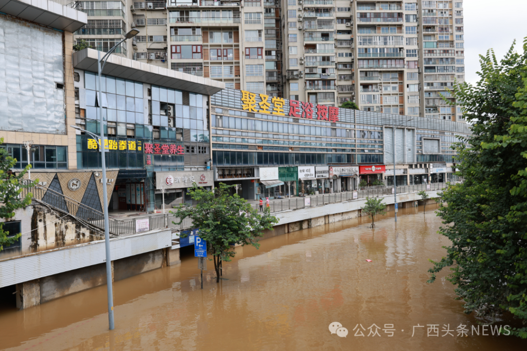 柳江出现2024年第2号洪水,柳州市区多地被洪水淹没