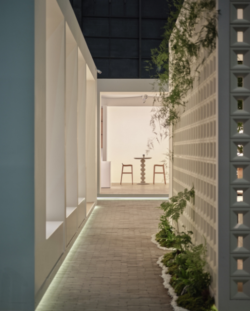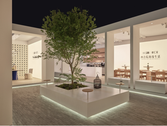 在设计上海展会上,HC28|都汇里带来了一座现代风格的四合院,立面通体米白色,辅以简单通透的空心砖墙,既有传统四合院的韵味,又呈现出前卫新潮的现代生活场景。
