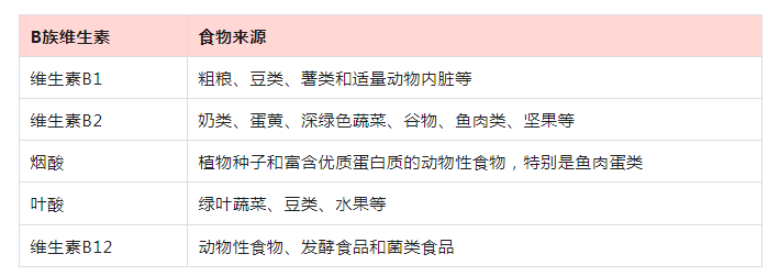 包括维生素B1、维生素B2、维生素B12、烟酸、叶酸等。B族维生素从日常饮食中补充,更有利于身体吸收利用。