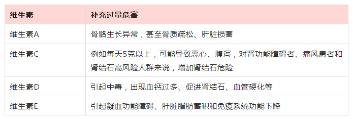需要提醒的是,4类维生素尤其不能补充过量。
