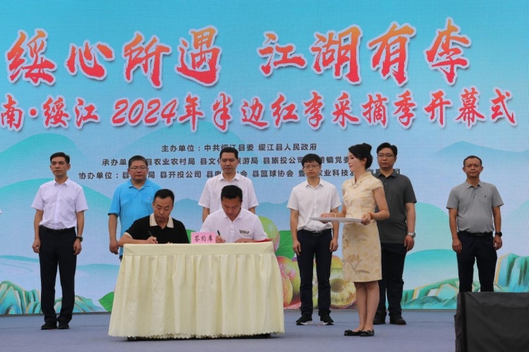 7月13日,绥江举办“云南·绥江2024年半边红李采摘季”开幕式,吸引了来自上海、浙江、四川等地十多家直销直采企业到场对接,其中曙华(云南)国际贸易有限公司、重庆优乐果品供应链管理有限公司和长城果业公司在开幕式现场直接签约,三家公司共收购“半边红”李1100余吨。