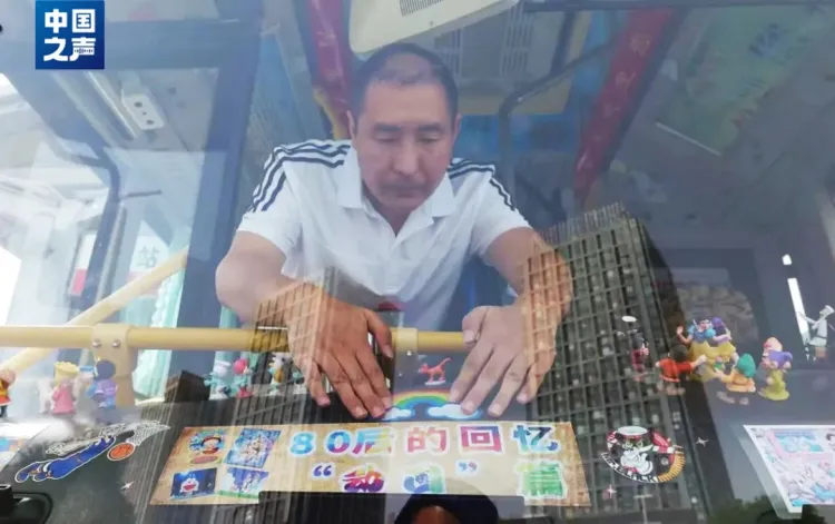 在冯志亮的38路公交车上,车内操控台上粘贴着各种造型的卡通手办,车厢里悬挂着色彩缤纷的小卡片,上面写着邯郸景点介绍和励志语。