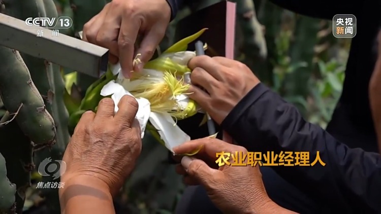 在河北保定满城区澳涵家庭农场,河北农业大学2023届毕业生李智琪给农场负责人王金开讲解基质栽培。王金开的家庭农场占地约70亩,有2个日光温室大棚和1个简易连栋大棚,主要种植火龙果和桃。近几年,农场经营一直不错,每年能给王金开带来10多万元收入,他早就打算进一步扩大农场的规模。作为大学生“农业职业经理人”的李智琪得知后,主动为王金开做了市场调研和扩产计划。
