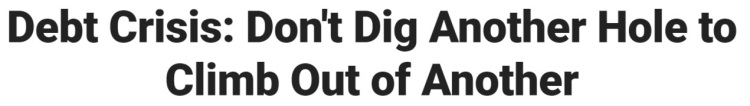但正如福克斯新闻网的评论所说,即便国会再一次提高或暂停了债务上限,也没有从根本上解决债务失控问题,只不过是“从一个坑跳到了另一个坑”。