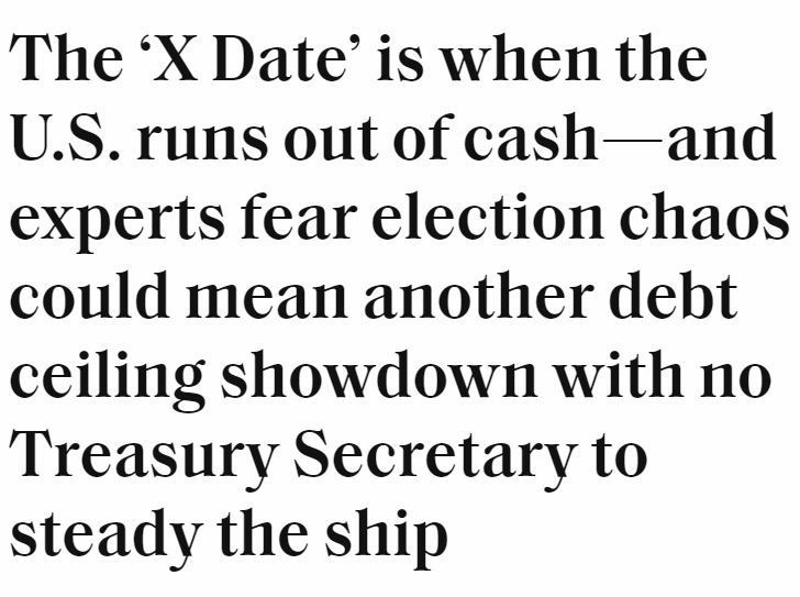 美国《财富》杂志分析称,在下一个美国财政部无钱可花的“X日”临近之际,选举混乱可能引发又一场债务上限“摊牌”。只是届时不知财政部长是否会换人,以及新财长还会不会像现任财长耶伦那样为此“奔忙”。