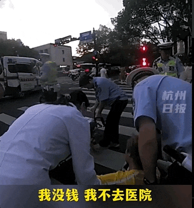 这时候,救护车也赶到现场了,医生很快给小伙做了检查。但到了要送上车的时候,小伙突然有些不情愿,坐在地上摆摆手,表示不用去医院。这下子,大家都急了。虽然人是醒过来了,但现在这样子怎么能让人放心。